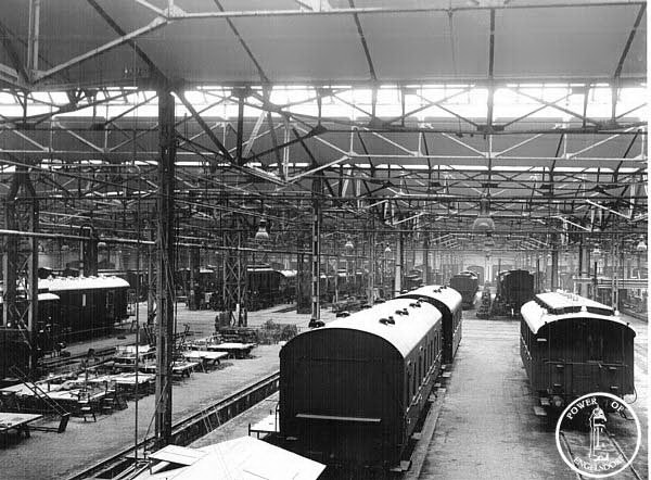 Die Lokkessel wurden nun im Fließverfahren ausgebessert, die Kessel wanderten innerhalb der Halle von Stand zu Stand.