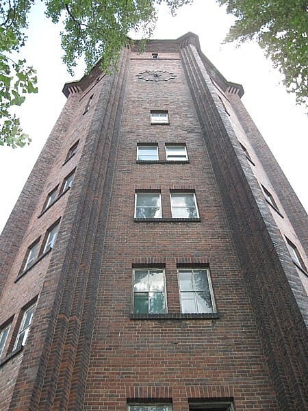 Der wie ein Hochhaus aussehnende Wasserturm gilt als erstaunliches Bauwerk. Er fasst 400 Kubikmeter Wasser, wobei sich der Behälter in 22 Metern Höhe befindet. Im unteren Bereich richtete man zugleich Büroräume ein. Gefördert wurde das Wasser aus 30 Metern Tiefe.
